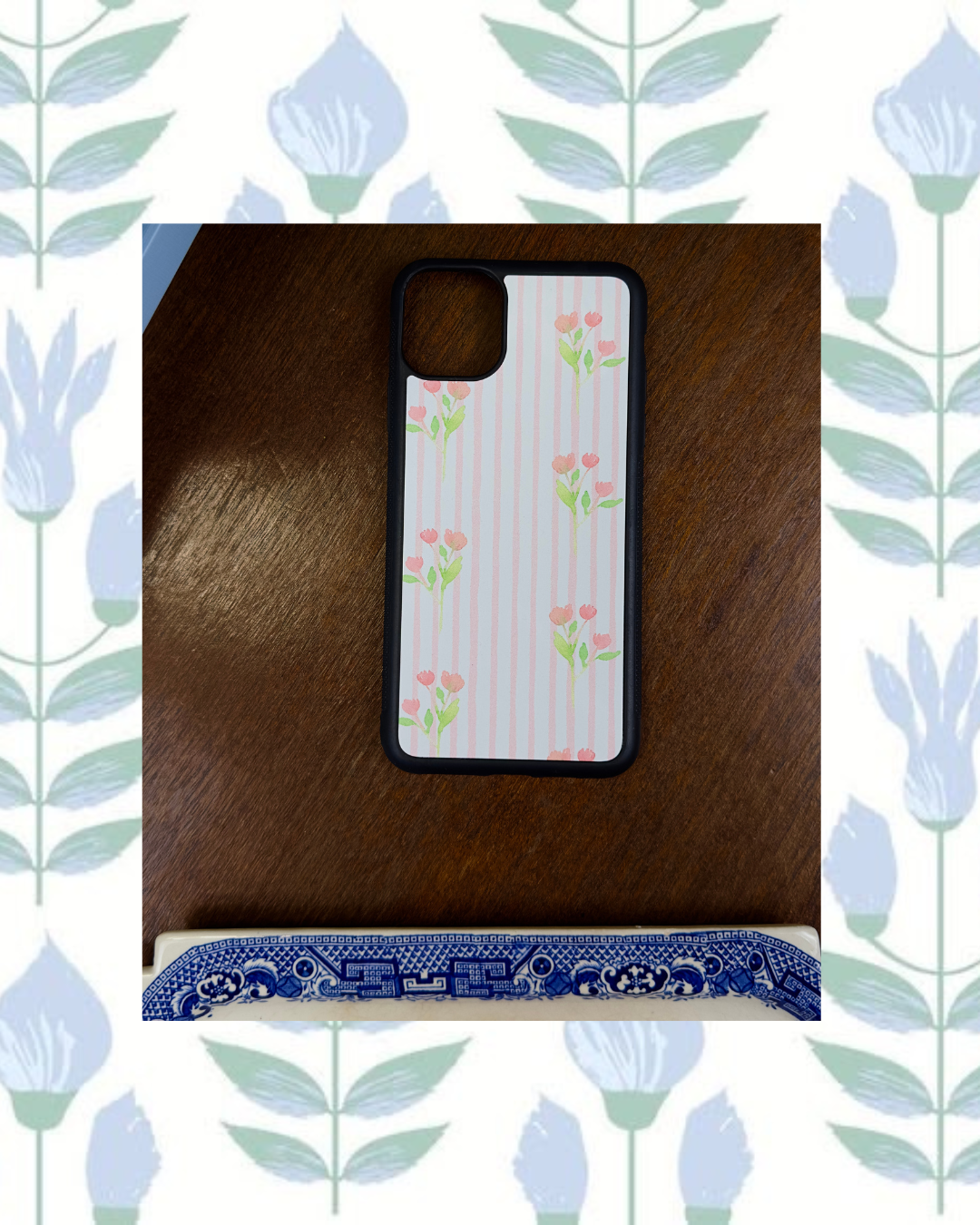 Floral + Pink Stripes Phone Case