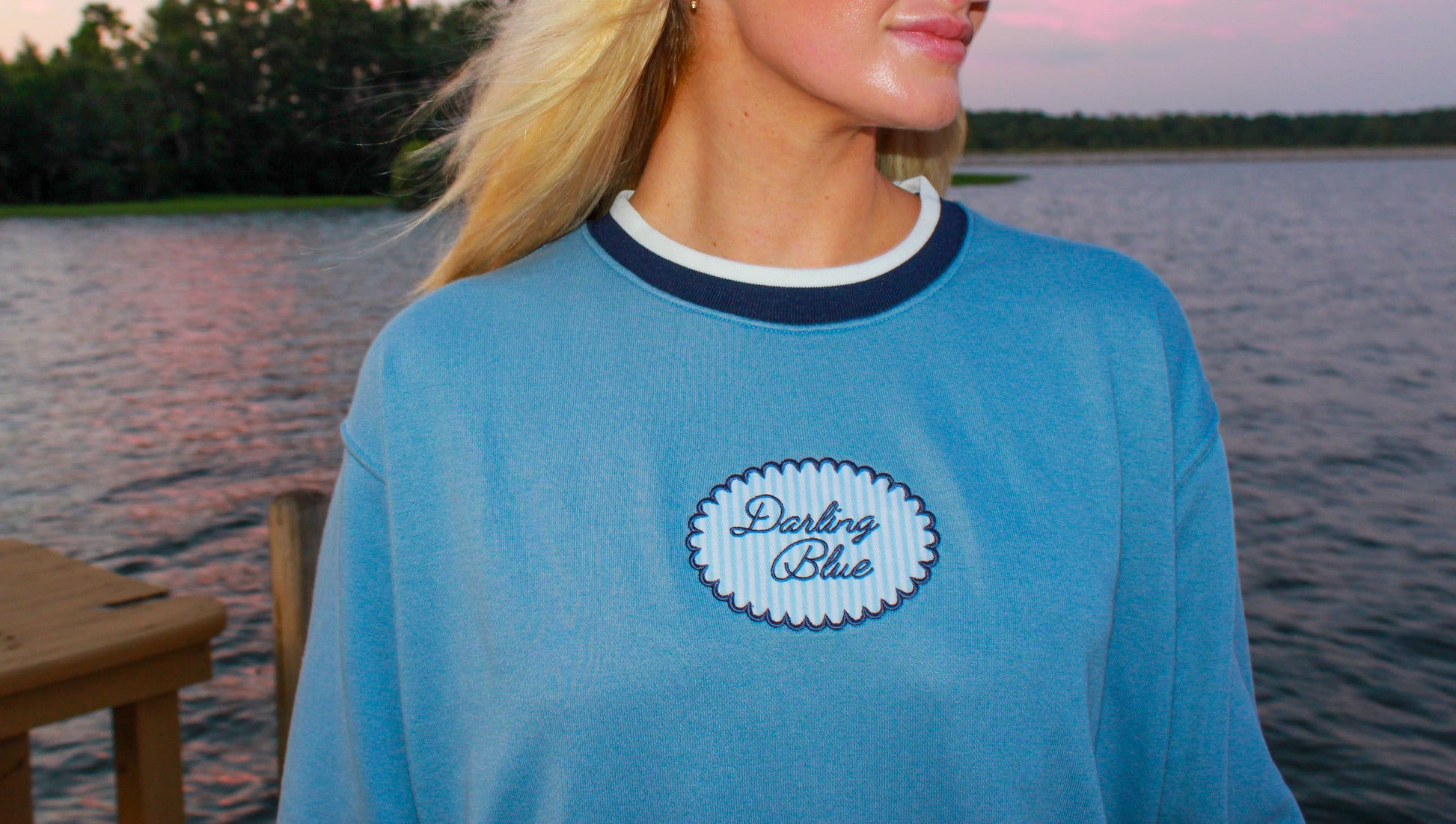 Your new go to for cozy mornings on the dock and breezy boat rides. The Lake Days Crewneck is soft, classic, and perfectly oversized, made to throw on after a swim or while chasing sunsets. Crafted from breathable 100% cotton French terry, it’s the ideal mix of comfort and ease. Finished with our signature Darling Blue embroidered logo, this relaxed fit sweatshirt brings timeless, lake inspired charm you’ll reach for all season long.