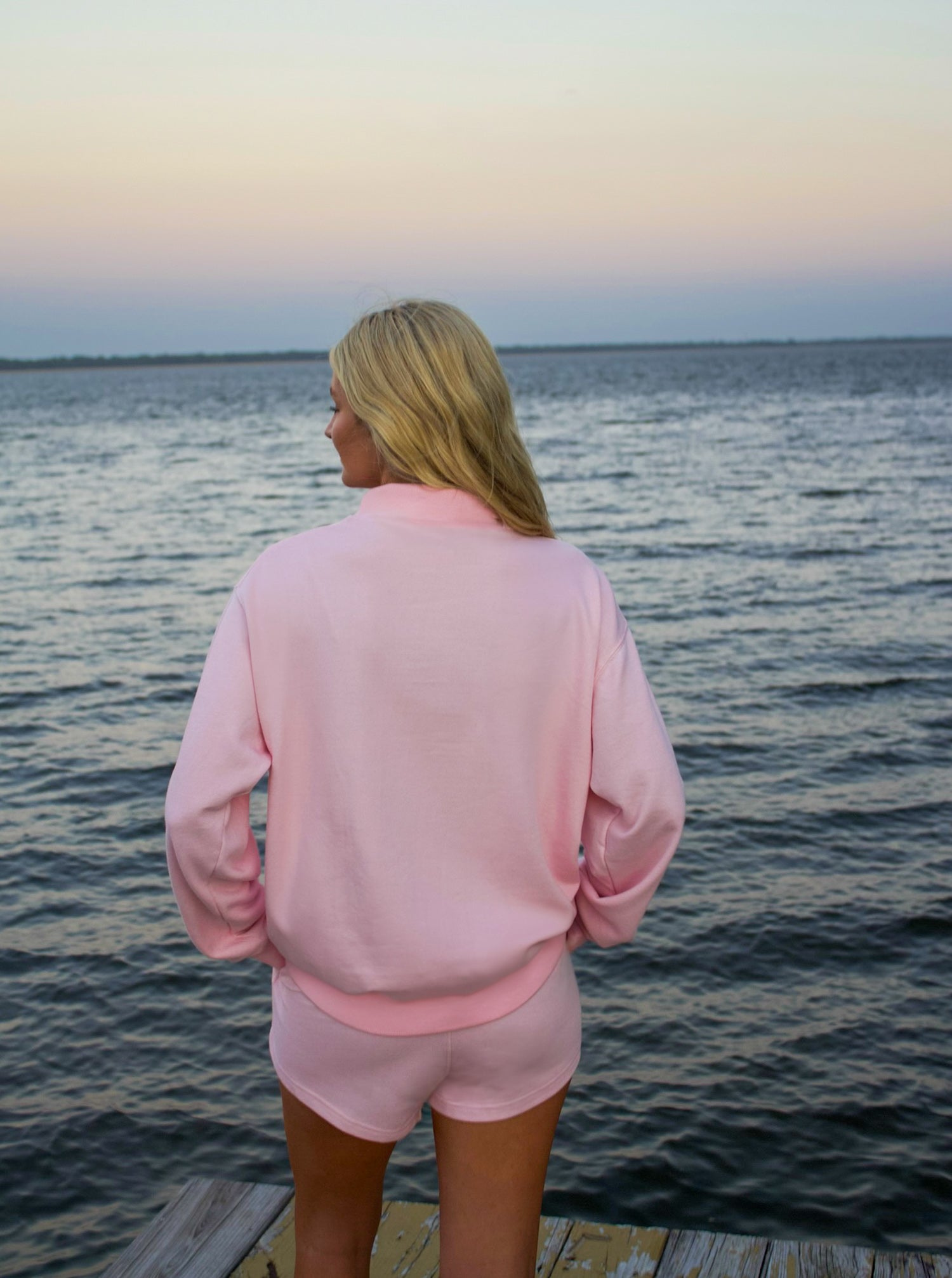 The Dockside Shorts are the perfect blend of comfort and charm, made to match your favorite lake days and sunset strolls. Crafted from 100% cotton French terry, they’re soft, breathable, and effortless to wear. The dreamy blush pink hue pairs perfectly with our Dockside Mock Neck, while the relaxed fit keeps things comfy from morning coffee to golden hour on the dock.